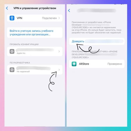 → Доверять профилю Apple ID.![]()