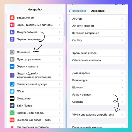 Настройки → Основные → VPN и управление устройством![]()