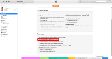 Откройте iTunes и активируйте синхронизацию по Wi-Fi.